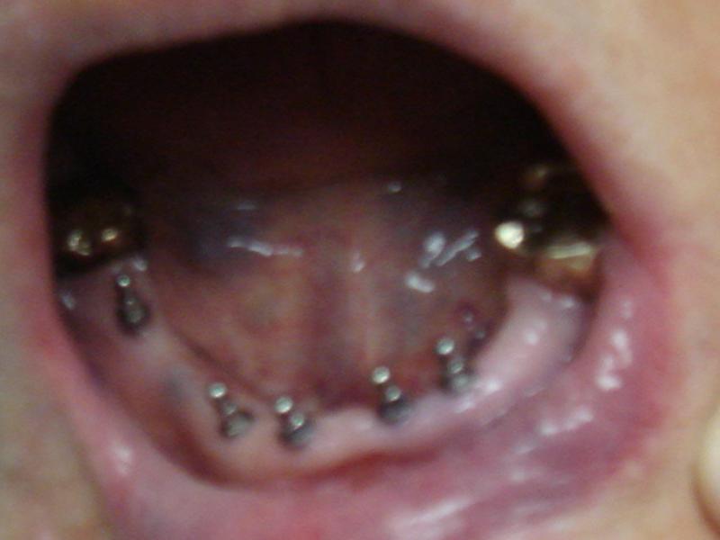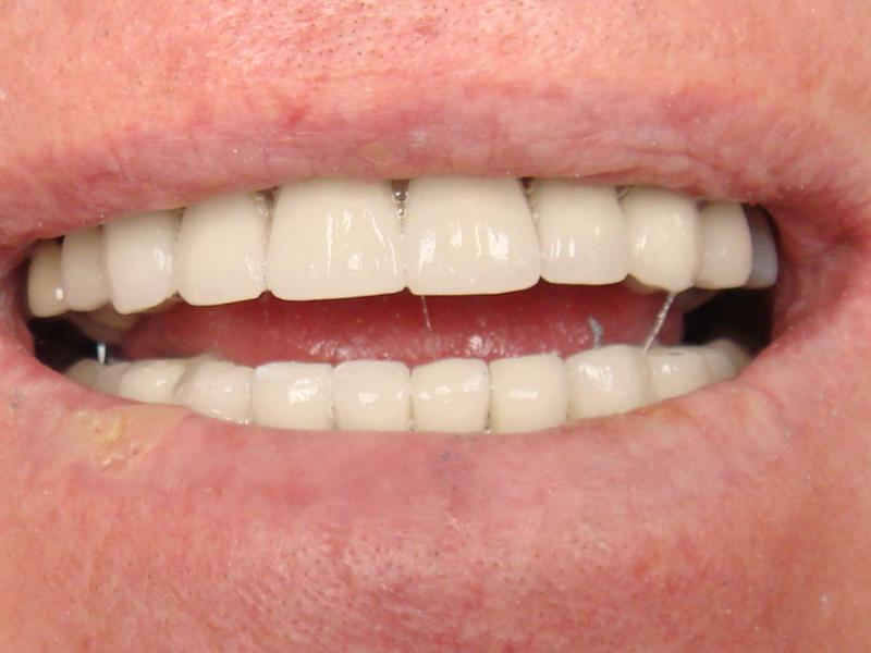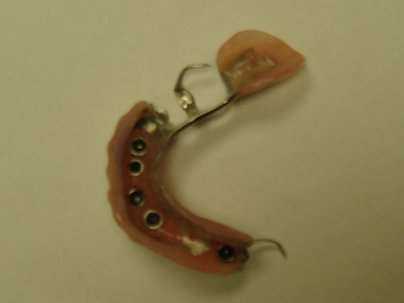 Implants placed in between teeth to help make the partial more stable and esthetic.